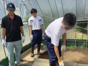 この授業を通して、生徒たちは、野菜を育てる上での心構えや管理の大切さを再確認でき、今後の活動への意欲がさらに高まりました。また、教員は、事前に土壌改善・整備に関してのご助言をいただき、今後のハウスの活用方法について考える助けとなりました。