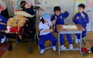 小学部1・2年生は、城端小学校の2年生と一緒に「なかよし集会」をしました。