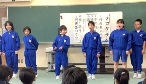 音楽で学習した、皆を元気にすることができる日本が誇る踊り「よさこい」を発表しました。鳴子を使った力強い動きや、リズムに合わせた元気な踊りを通して、みんなで協力する楽しさや大切さを学び、表現することができました。一人一人が役割を果たし、仲間と助け合いながら発表することで、「助け合い」の大切さを届けることができました。