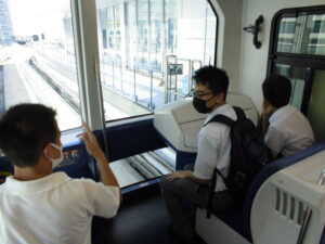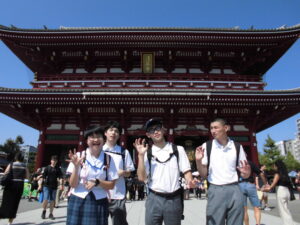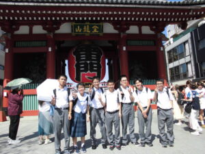 1日目は、新高岡駅から北陸新幹線に乗車して、上野駅まで行きました。上野駅からは、A班、B班の2グループに分かれて活動し、A班は、浅草寺と日本科学未来館、B班は、浅草寺と東京都水の科学館を見学しました。移動は、公共交通機関を利用し、駅の切符売り場の路線図で目的の駅と運賃を確認しながら切符を買って乗車しました。
