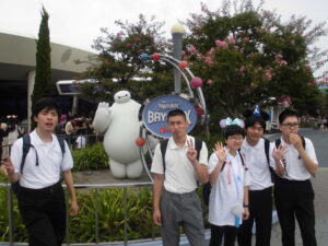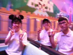 2日目は、東京ディズニーランドに行きました。乗り物のアトラクションや昼食のカレーやピザ、お土産の購入など、グループのみんなと一緒に、ディズニーランドを楽しみました。