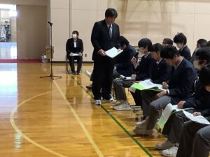 講話を聞いて、生徒からは「元気よく挨拶することを頑張りたい」や「自分のことは自分で行う」などの声が聞かれ、気持ちを新たに取り組んでいこうという意欲を高める機会となりました。