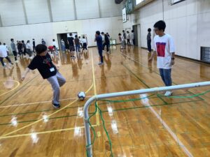 休憩後の、文化活動委員会と地区委員会が主催の親子活動では、富山県サッカー協会よりお招きした講師の先生方の指導のもと、親子でドリブルやパス、シュートなどに取り組み、楽しく身体を動かしました。また、ビンゴゲームも大いに盛り上がりました。